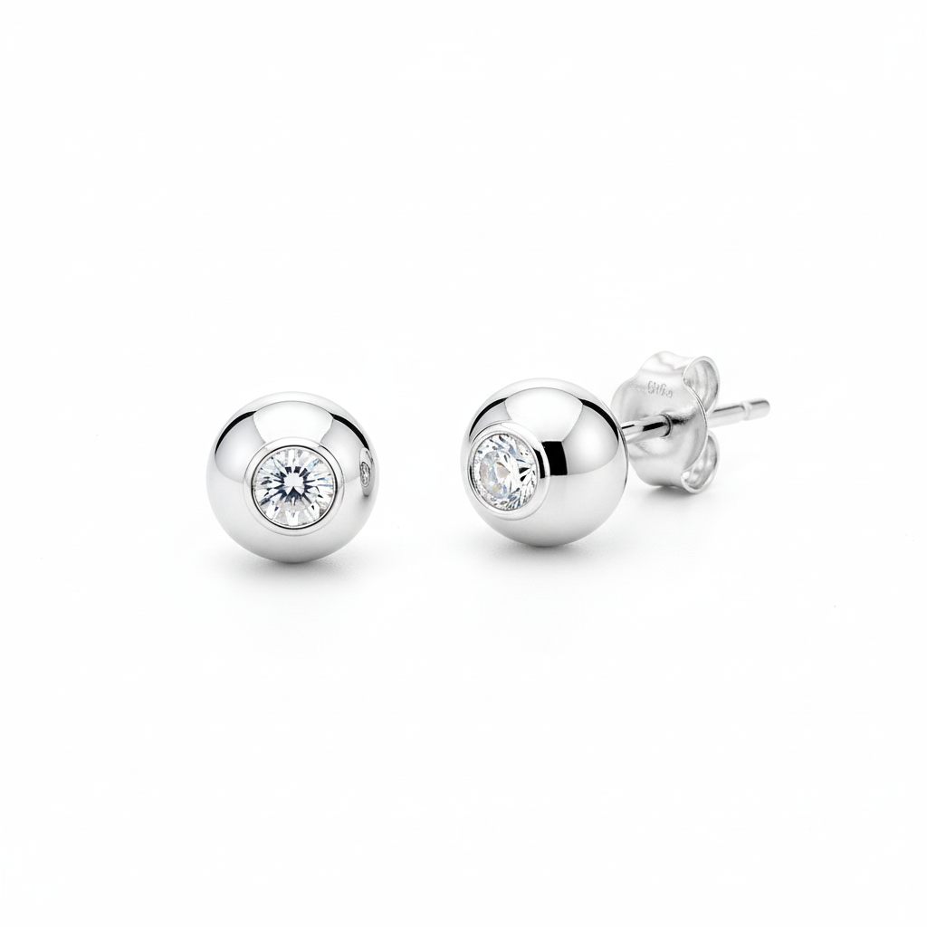 Sumérgete en el brillo etéreo con los ‘Cosmic Dewdrop Studs’. Estos aretes de botón, con un diseño minimalista y futurista, presentan una pequeña esfera de metal pulido que evoca un mini planeta. En su centro, una gema iridiscente parece una gota de rocío cósmico, capturando y dispersando la luz con un juego de colores sutil. Su acabado metálico, limpio y brillante, hace de estos aretes una declaración discreta pero impactante. Perfectos para un toque de elegancia diaria o para añadir un destello de otro mundo a tu estilo.